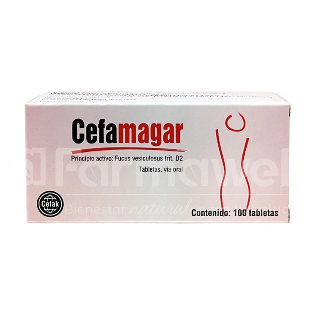 Cefamagar, principio activo fucus vesiculosus. Medicamento homeopático simple.
